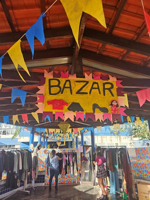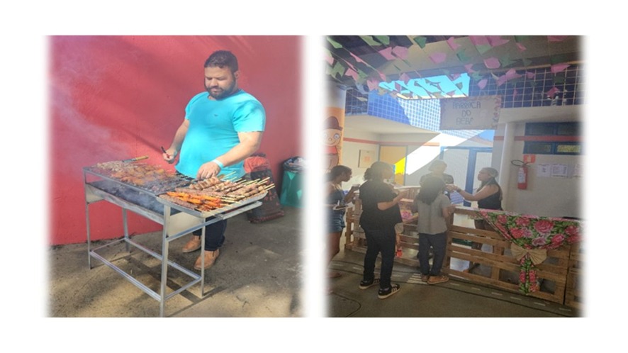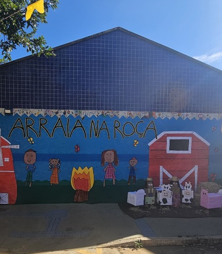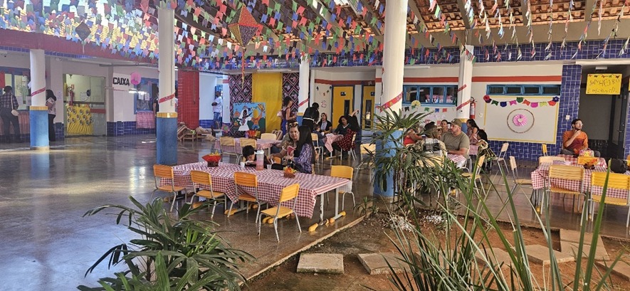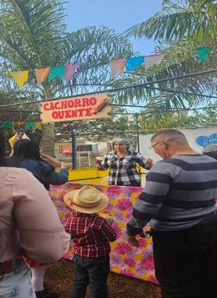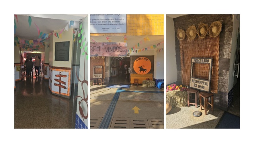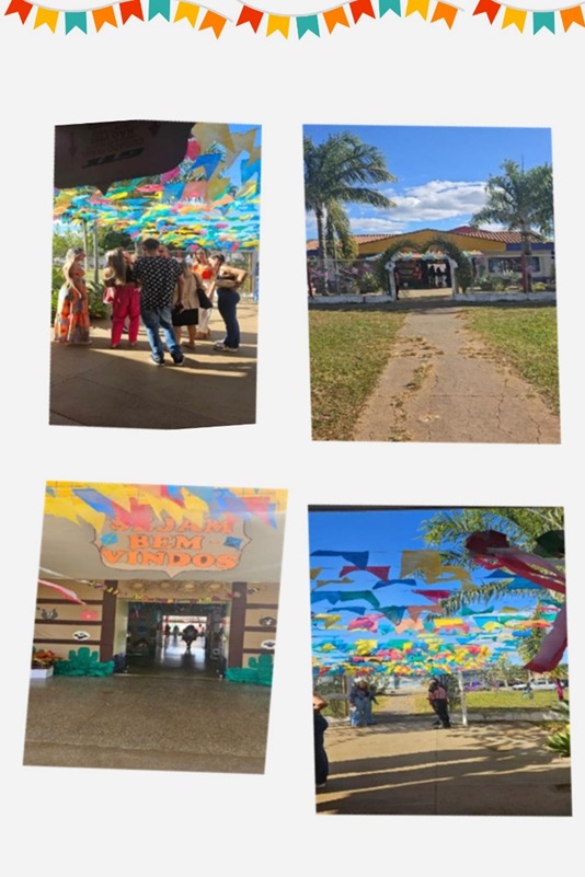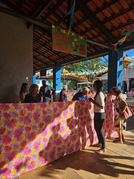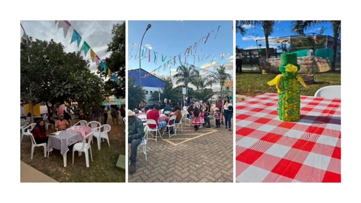 O espaço ganhou vida com decorações típicas. Nelas continham muitas cores vivas, tecidos e detalhes que remeteram ao clima junino.