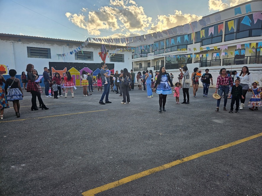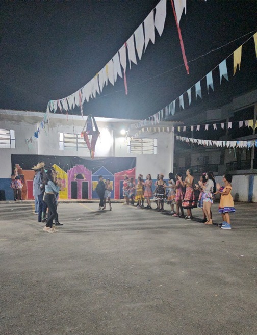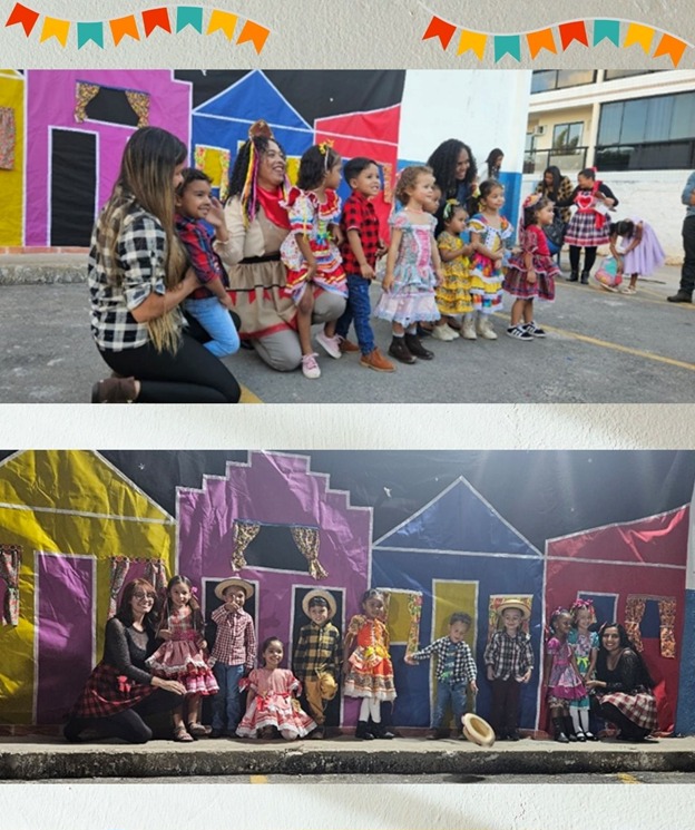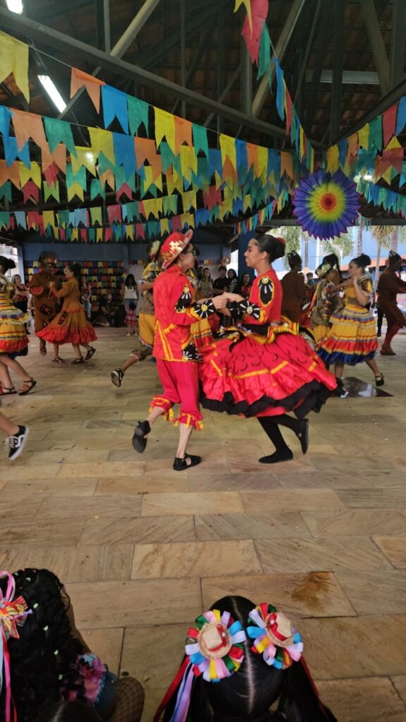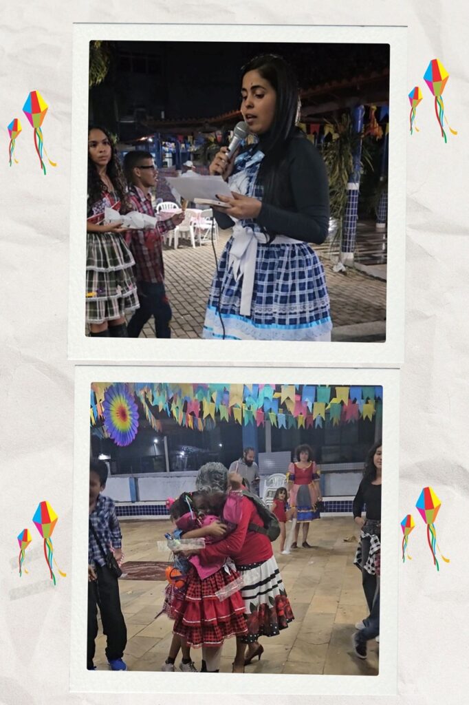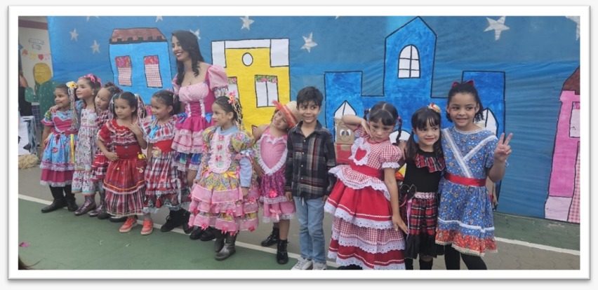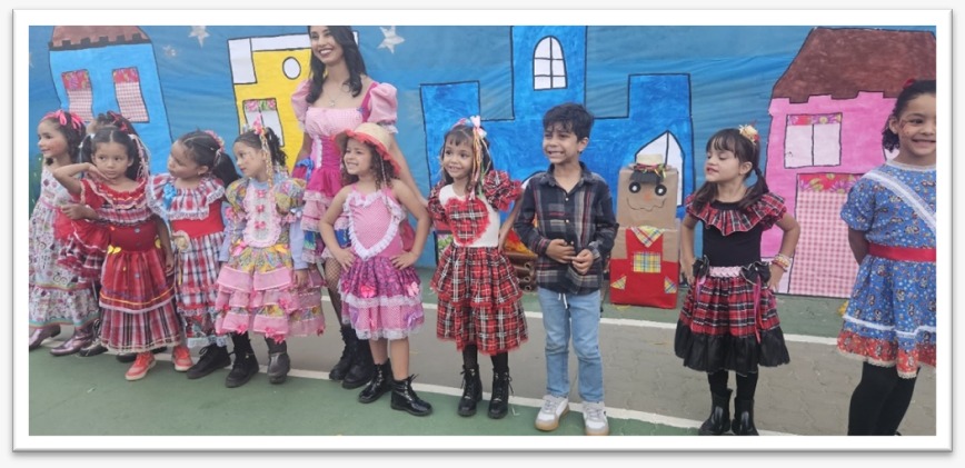 Os momentos mais emocionantes da festa foram as apresentações das crianças. Com trajes típicos, sorrisos no rosto e muita empolgação, elas encantaram a todos com coreografias preparadas com muita dedicação.