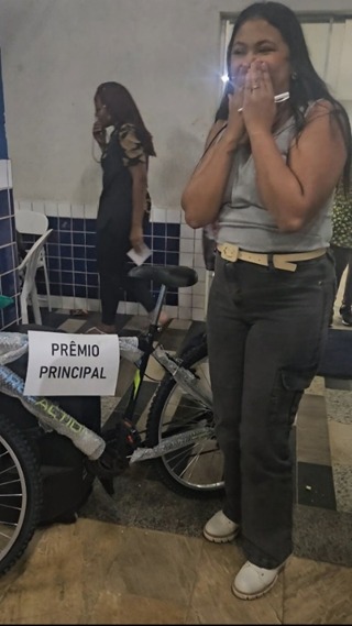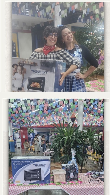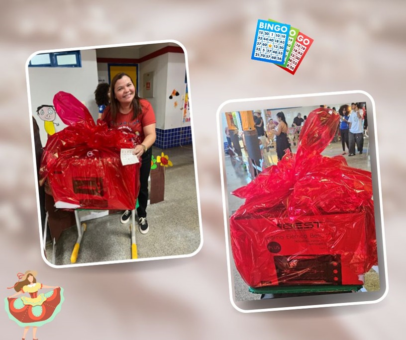 A hora do bingo foi um momento muito contagiante. Foi espaço reservado para os adultos se distraírem, o brinde principal foi um forno elétrico e a ganhadora foi a monitora da unidade, Evanda.