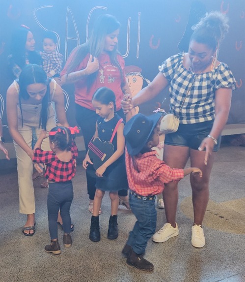 Na sequência, o Serviço de Convivência e Fortalecimento de Vínculos fez sua apresentação com uma coreografia super divertida executada pelas crianças.