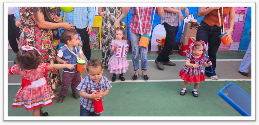 As apresentações musicais se iniciaram com as crianças da educação infantil, que esbanjaram fofura dançando baião e outros ritmos.
