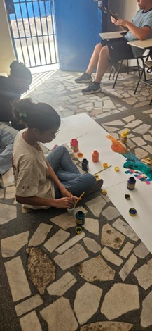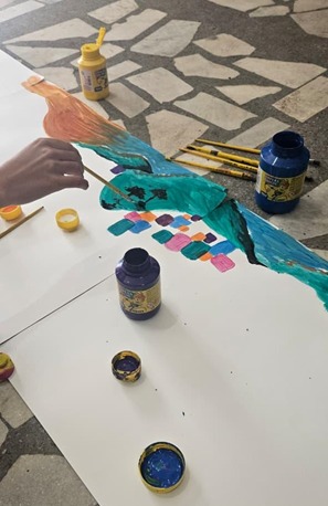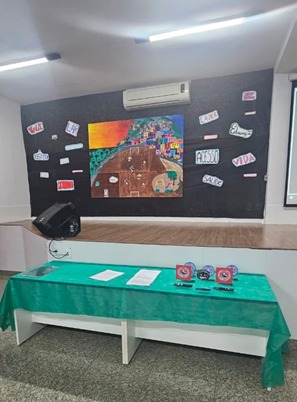 Enquanto alguns cuidavam da organização geral, outros se dedicavam à decoração: crianças e adolescentes passaram tardes fazendo desenhos e preparando cada detalhe que daria vida ao cenário. Era comum chegar nos espaços e encontrar grupos concentrados em recortes, pinturas e ideias criativas que, mais tarde, tomariam forma nas paredes e corredores.