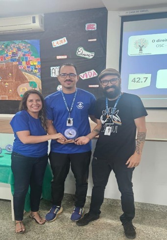 O prêmio foi para “Quando o Corpo Fala, o Direito se Afirma”, da OSC Casa Azul AABB, que conquistou nota 52. Representando o grupo, a Coordenadora Ruth da Casa Azul, subiu ao palco para receber o troféu, sendo calorosamente aplaudida pelo público.