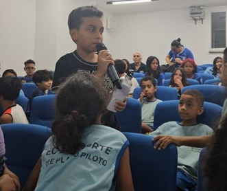 O vídeo de exibição dos vendedores dessa categoria foi o momento ainda mais especial com a exibição das crianças na TV Câmara, reforçando o protagonismo infantil e a importância de garantir espaço para que se expressem, participem e contribuam ativamente nas discussões sociais e culturais.