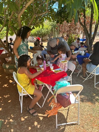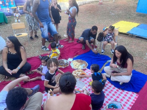 Para encerrar o dia com chave de ouro, houve um lanche coletivo ao ar livre, proporcionando um ambiente acolhedor e descontraído para que famílias, crianças e educadores compartilhassem momentos únicos de convivência e afeto.