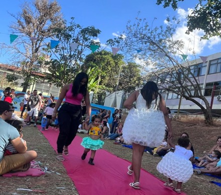 Ainda no dia 26/09 a programação foi aberta com a encantadora apresentação “O que tem na sopa do bebê”, realizada pelas famílias e pelas crianças do Berçário I. Em seguida, as turmas do Berçário II deram um show de imaginação com a História Cantada “O Grande Rabanete”. Logo seguiu com um desfile criativo de roupas confeccionadas com materiais recicláveis, protagonizado pelos alunos dos Berçários II B e C.