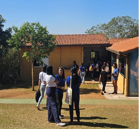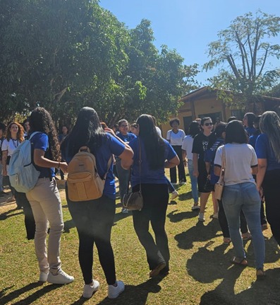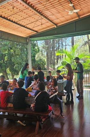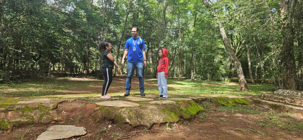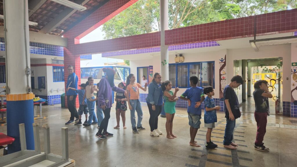 Mantendo a formação em duplas, com um aluno do Colégio Heavenly School Brasília e convivente do SCFV, o grupo foi dividido em duas equipes, cada uma acompanhada por um guia responsável. A proposta permitiu uma melhor organização das dinâmicas e garantiu que todos participassem ativamente das experiências oferecidas ao longo da manhã.