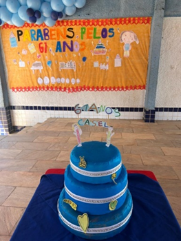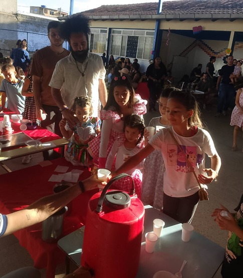 Para finalizar o evento, com muita animação, houve a participação de uma mãe, que convidou as demais famílias para um momento de musicalização. Por fim, no pátio da escola, foi servida uma deliciosa galinhada, bolo e pipoca doce.