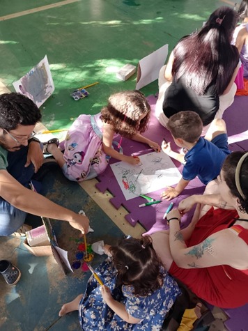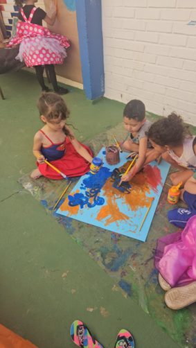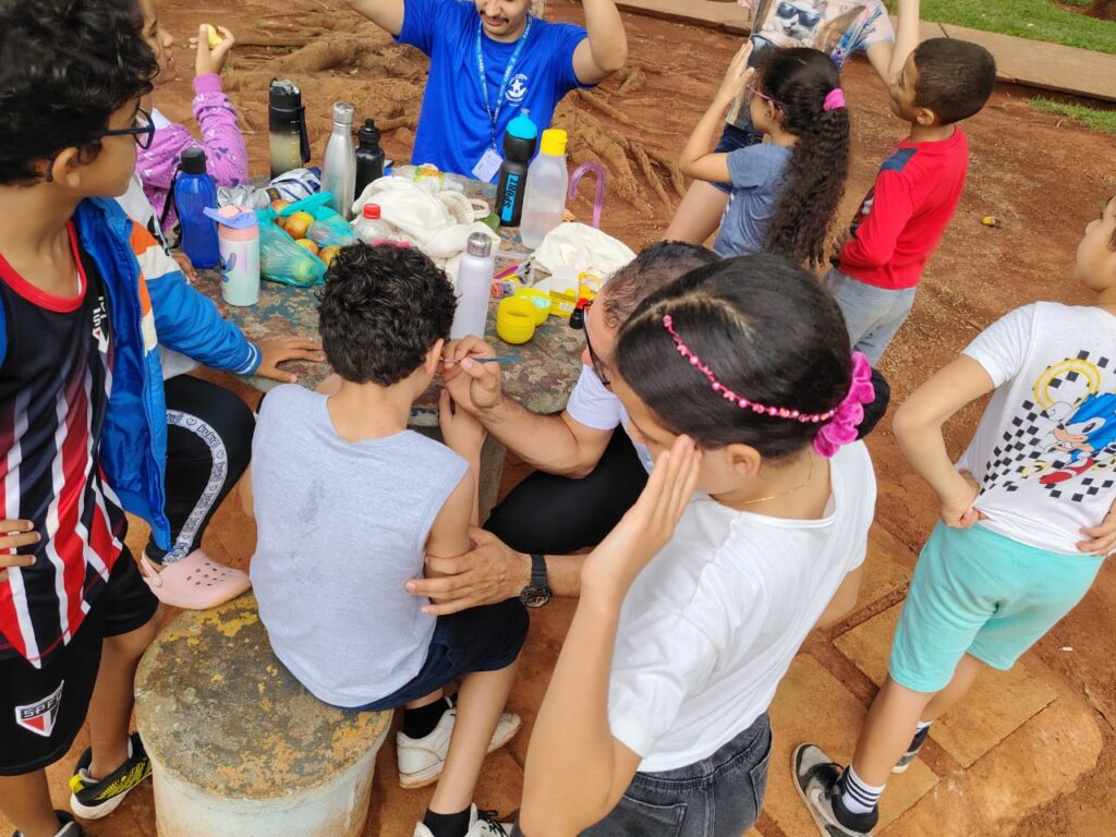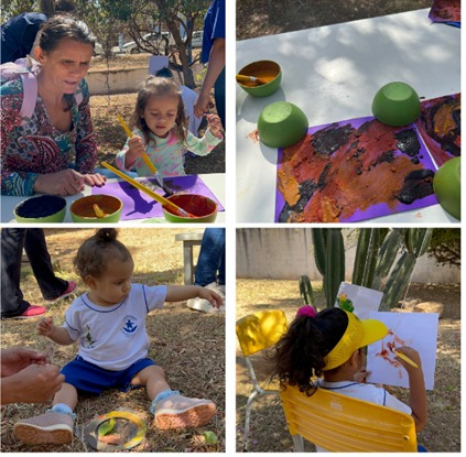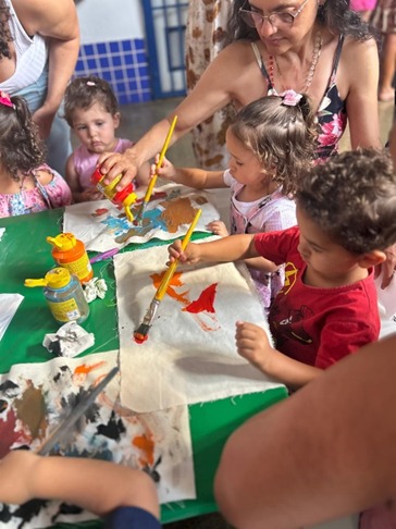 Logo após a exposição, crianças, adolescentes e adultos participaram de um momento inusitado, que despertou o lado criativo e artístico de cada um. Durante a atividade, todos realizaram pinturas utilizando tintas naturais, explorando cores, formas e criatividade. A experiência foi muito bem recebida por eles, que se divertiram ao perceber que até os adultos se envolveram na atividade, tornando o momento colaborativo, lúdico e enriquecedor.