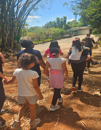 Durante o período da manhã, crianças e adolescentes participaram de um passeio dinâmico e educativo, marcado por diversas brincadeiras interativas, momentos de descontração e muitas risadas.