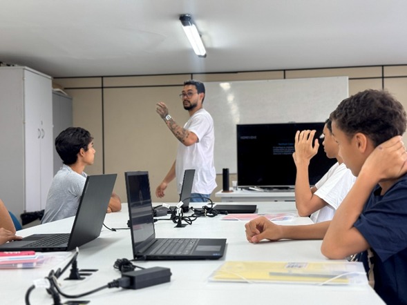 Ao longo da programação, os educadores conduziram ações pedagógicas, apresentando o espaço aos participantes e compartilhando conhecimentos de forma acessível e envolvente.