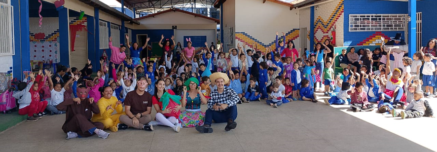 A programação começou com apresentações animadas das crianças, que encantaram o público ao som da música “Esperando na Janela”. A coreografia teve um toque especial: os próprios professores participaram das danças e o som foi no carro da família de uma criança, com a música tornando o momento ainda mais divertido e inesquecível.