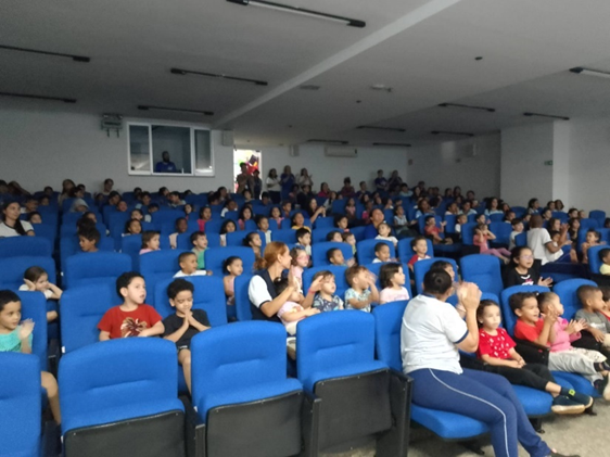 As crianças que estavam no auditório se encantaram com a apresentação. A cada cena, os sorrisos e olhares atentos mostravam o quanto a história da Casa de Ismael despertou curiosidade e alegria. A participação dos educadores caracterizados deixou o momento ainda mais divertido, e o público infantil simplesmente amou cada parte da encenação.