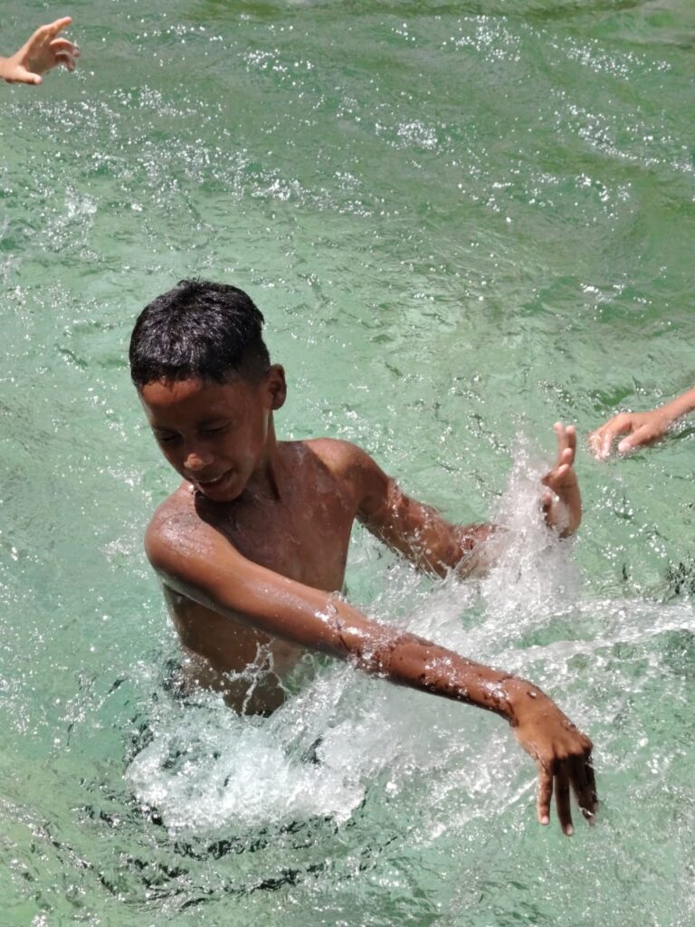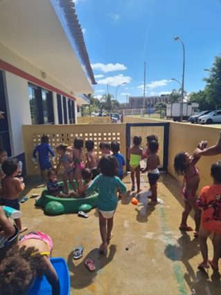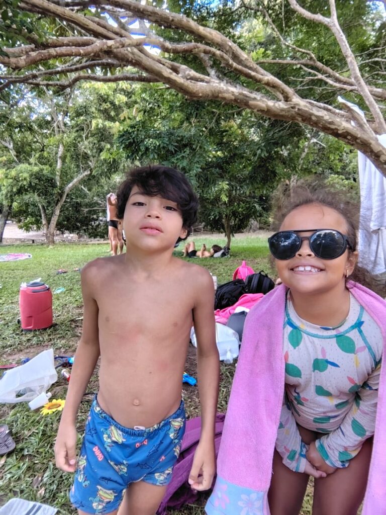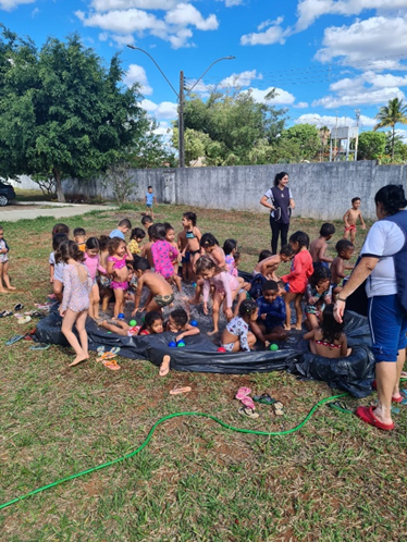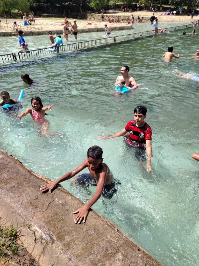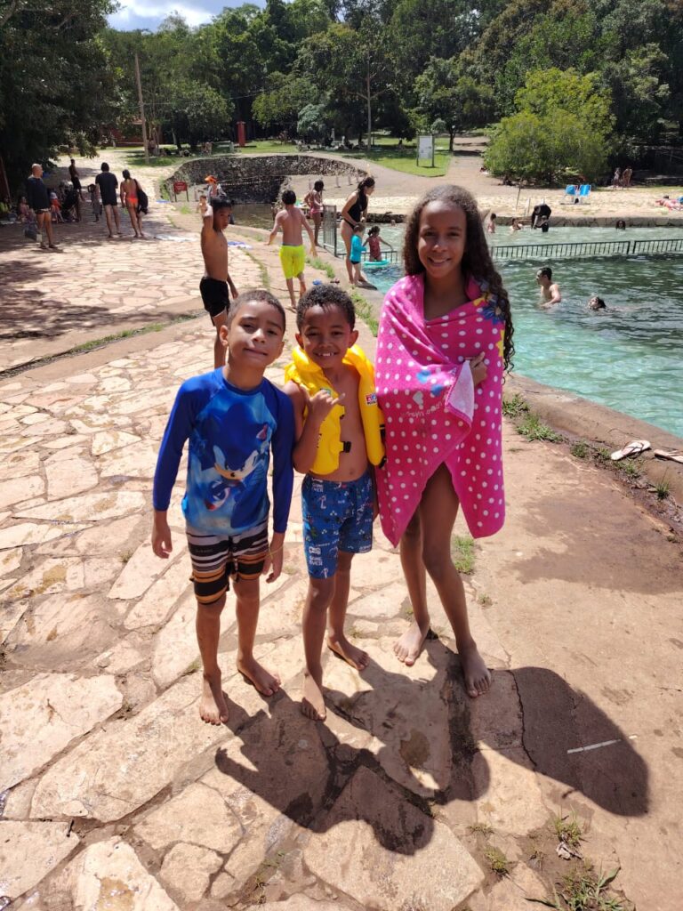 As crianças e adolescentes passaram o dia no Parque Nacional de Brasília, também conhecido como Água mineral, com o objetivo de proporcionar momentos de lazer, socialização e bemestar. Durante a atividade, as crianças e adolescentes levaram lanches e utilizaram roupas apropriadas ao ambiente, conforme orientações previamente estabelecidas. Ao longo do dia, as crianças e adolescentes participaram de diversas brincadeiras, especialmente dentro da piscina, interagindo de forma positiva com os colegas e demonstrando entusiasmo e diversão. Aqueles que não sabiam nadar utilizaram boias durante todo o período das atividades aquáticas, garantindo maior segurança. Os educadores acompanharam continuamente todas as ações, mantendo atenção constante e oferecendo auxílio necessário, assegurando o cuidado e a integridade física das crianças e adolescentes.
