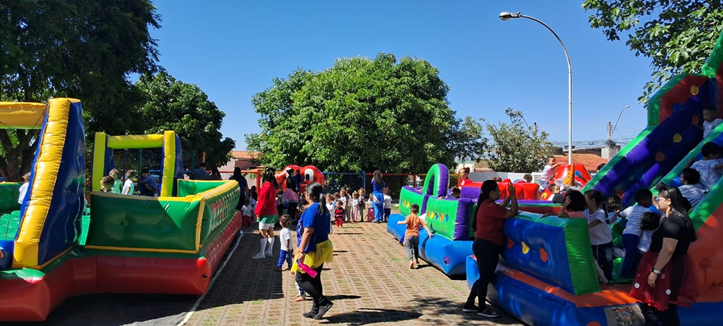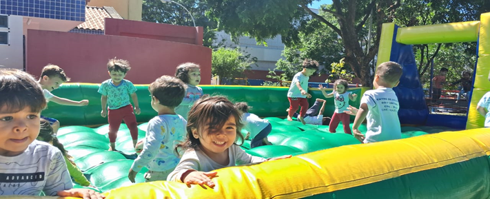 Iniciaram a manhã com a encenação da música ” A Linda Rosa Juvenil”, tiveram brincadeiras e alguns brinquedos infláveis ao longo do dia.