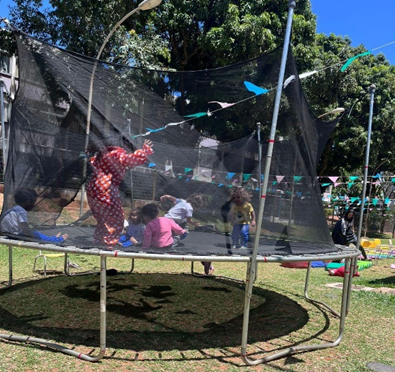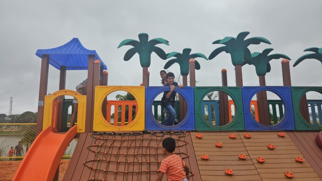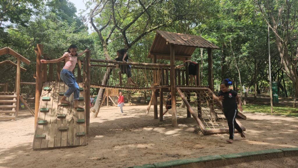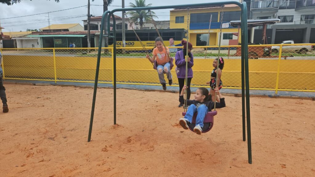 Sorrisos e energia marcaram as brincadeiras no parquinho, onde a diversão foi garantida do começo ao fim.