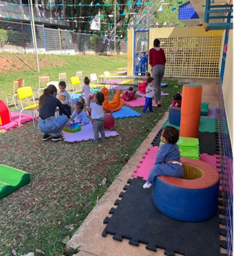 Entre as ações desenvolvidas, destacaram-se as brincadeiras na casa da árvore, além de desafios que estimularam coordenação motora, concentração e trabalho em equipe.