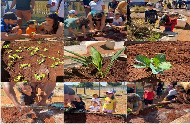 Além das apresentações, as famílias participaram de diversas oficinas com materiais reutilizáveis, de momentos de plantio na horta e de atividades artísticas com desenhos e pinturas. Para completar a experiência, a equipe organizou um piquenique especial, oferecendo pão de metro, bolo, torradas com geleia e torta salgada — uma forma de garantir uma alimentação saudável e evitar a contaminação cruzada com frituras ou produtos industrializados que poderiam ser levados de casa.
