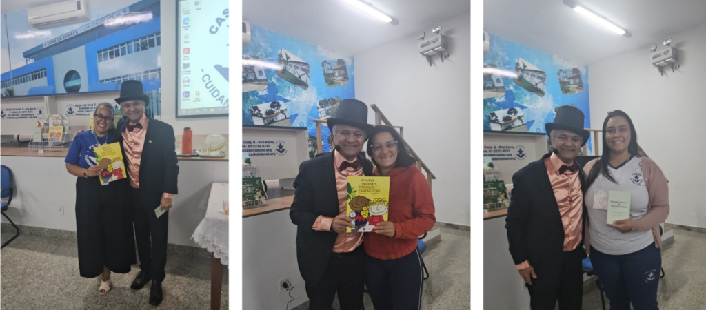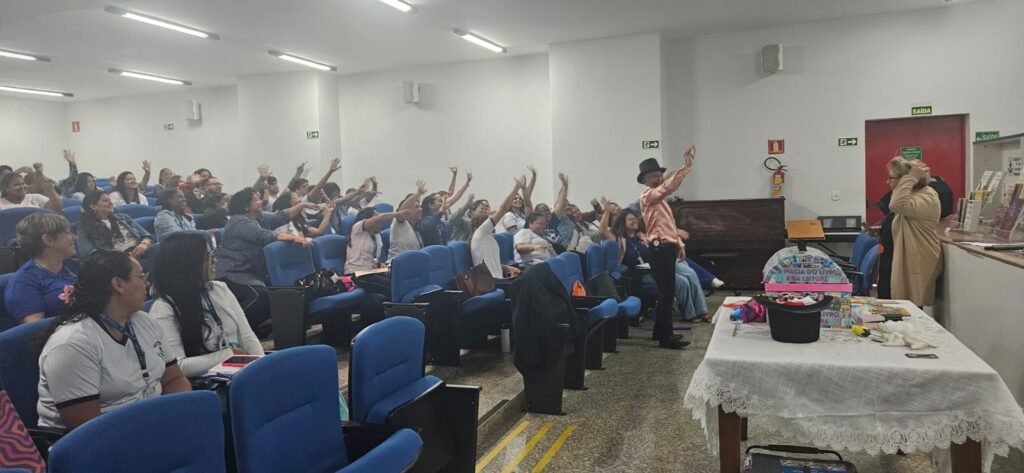 Durante a palestra, Simão envolveu os participantes com dinâmicas e brincadeiras, mostrando a importância de manter o aprendizado divertido e participativo. Ele apresentou livros infantis e destacou o valor de tê-los como referência dentro das salas de aula, além de realizar pequenas “mágicas” que reforçaram conceitos pedagógicos de forma lúdica.