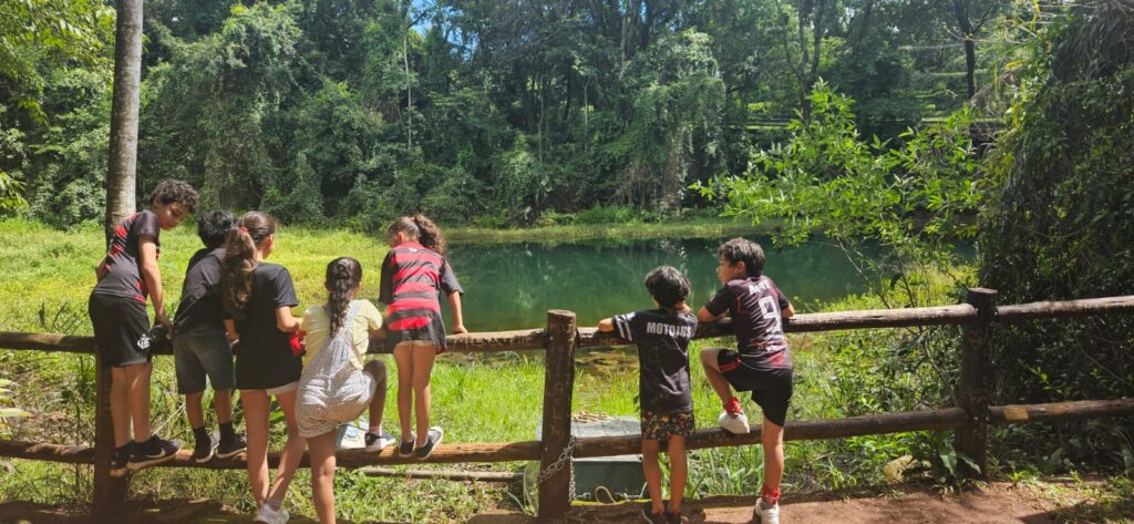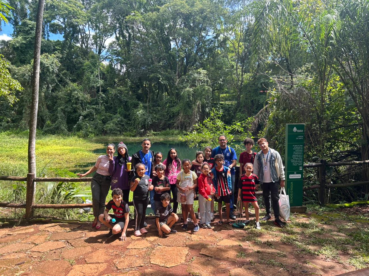 Em um momento de descoberta, o grupo conheceu a Lagoa do Sapo, explorando o espaço e aprendendo sobre o ambiente natural.