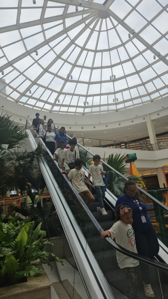 Ao entrarem no Shopping, as crianças e adolescentes demonstraram entusiasmo imediato, enquanto caminhavam pelos corredores, a alegria era visível nos sorrisos e nos olhares.