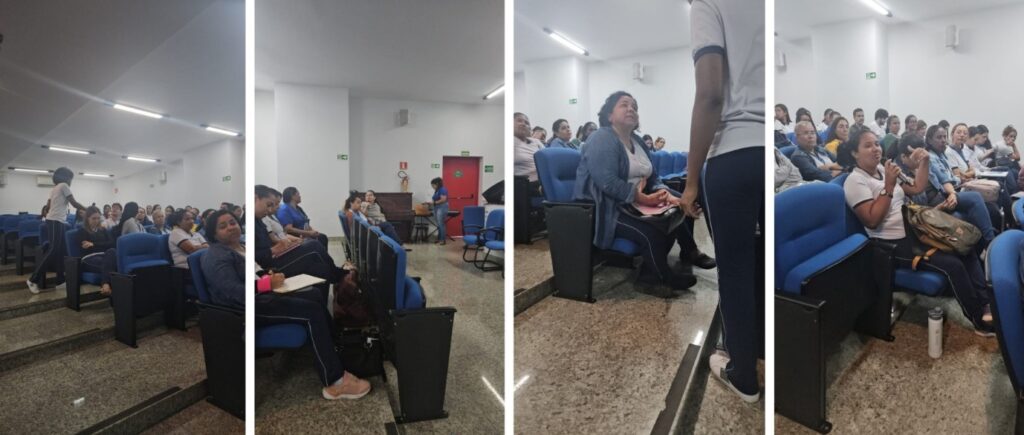 experiências.No período vespertino, os participantes seguiram com dinâmicas e atividades práticas, reforçando os conteúdos da manhã e promovendo a troca de experiências entre os profissionais.