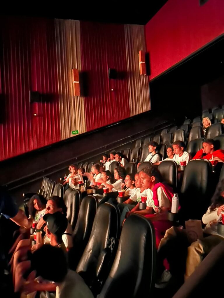 O kit mais amado pelas crianças ( pipoca e refrigerante) acompanharam a sessão. O lanche contribuiu para tornar o momento ainda mais especial, reforçando o clima de alegria e proporcionando uma experiência completa de lazer e integração para as crianças e adolescentes.