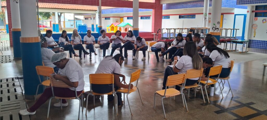Durante o dia de formação não houve atividades regulares com crianças e adolescentes, garantindo que o dia fosse dedicado exclusivamente à capacitação e ao desenvolvimento dos educadores.